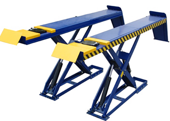 剪叉式舉升機屬于一種特殊液壓升降機,可使得汽車中心(或質心)處于立柱的中間位置,對于皮卡和箱式貨車等類型的汽車的日常維修來說這種對稱式舉升機可能是很好的選擇。但是對于一些柱間寬度不夠大的對稱式雙柱式舉升機來說,汽車舉升后不能打開車門是一個很大的缺點。非對稱式舉升機的立柱向后旋轉了一個角度(大約30°),并且前臂比后臂稍微短一些。當把汽車停放到這種非對稱式的舉升機適當位置時,車的位置就向后移動了一些,因此,我們就很容易地從車門進出。而且,這種非對稱式舉升機轉動的立柱,可以確保車輛的重心安全地定位在立柱之間。